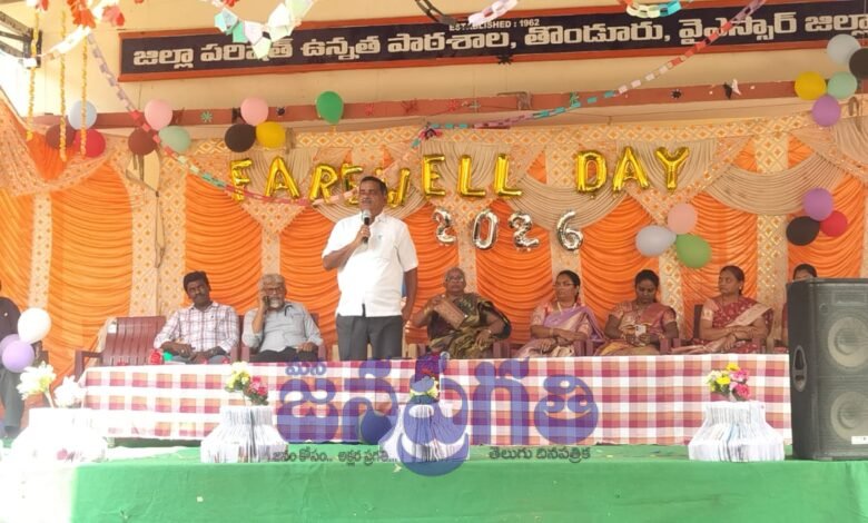 తొండూరు మన జనప్రగతి ఫిబ్రవరి 26:-మార్చిలో నిర్వహించనున్న పదవ తరగతి పబ్లిక్ పరీక్షల్లో మంచి మార్కులు సాధించి పాఠశాలకు,తల్లిదండ్రులకు మంచి పేరు తీసుకురావాలని తొండూరు ఉన్నత పాఠశాల ప్రధానోపాధ్యాయుడు కె.వి.సుబ్బారెడ్డి విద్యార్థులకు పిలుపునిచ్చారు.పాఠశాలలో పదవ తరగతి విద్యార్థుల వీడ్కోలు సమావేశం ఘనంగా నిర్వహించారు.ఈ కార్యక్రమానికి ముఖ్య అతిథిగా హాజరైన తొండూరు మండల విద్యాశాఖ అధికారి శివప్రసాద్ మాట్లాడుతూ విద్యార్థులు క్రమశిక్షణతో చదివి పరీక్షలను విజయవంతంగా రాయాలని,అత్యధిక మార్కులు సాధించి భవిష్యత్తుకు బలమైన పునాది వేయాలని సూచించారు.ఉపాధ్యాయులు తమ ప్రసంగాల్లో పరీక్షల సమయంలో పాటించాల్సిన నియమాలు,సమయపాలన,ప్రశ్నాపత్రం చదివే విధానం వంటి అంశాలపై విద్యార్థులకు సమగ్ర సూచనలు అందించారు. ఏకాగ్రత, ఆత్మవిశ్వాసం విజయానికి ముఖ్యమని పేర్కొన్నారు.సమావేశం అనంతరం నిర్వహించిన సాంస్కృతిక కార్యక్రమాలు అందరినీ అలరించాయి. సినిమా పాటలు,భక్తి గీతాలకు విద్యార్థులు చేసిన నృత్య ప్రదర్శనలు ప్రత్యేక ఆకర్షణగా నిలిచాయి. కార్యక్రమం ఉత్సాహభరిత వాతావరణంలో ముగిసింది.